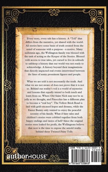 Every story. Every tale has a history. A background that differs from the narrative that has been shared with the world. But every story has some basis in truth created from the mind of someone with a purpose-a motive. Many millennia ago, the Wellington family was blessed with the curse being the keeper of the stories. Blessed to know the truth and dissimilarly cursed to live in solitude to safe keep a history that the world was not ready to acknowledge indeed existed beyond their imaginations. History is a butterfly effect of events intertwined between the lives of many prominent figures and people. What you know is not necessarily the truth? And what you are not aware of does not prove that it is not so. Behind our reality's veil is a world of mystery and lessons that a higher being hopes to learn from us as much as they attempt to teach us. Where old Saint Nick may not be as jolly, and Pinocchio just wants to be as Real as any other boy. The Yellow Brick Road is not only laid with gold and hopes and dreams, and the Easter Bunny only wanted to enjoy the peaceful serenity of his family. What if fairy tales and children's stories were equally part happy endings and part tastes of hell. If the original stories were leaked for profit, but the Wellingtons feel now is the time to expose the untold truths behind the Twisted Fairy Tells.