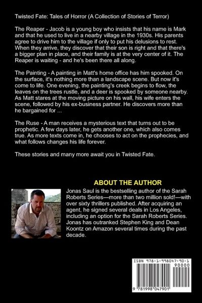 Twisted Fate: Tales of Horror (A Collection of Stories of Terror) The Reaper - Jacob is a young boy who insists that his name is Mark and that he used to live in a nearby village in the 1930s. His parents agree to drive him to the village if only to put his delusions to rest. When they arrive, they discover that their son is right and that there's a bigger plan in place, and their family is at the very center of it. The Reaper is waiting - and he's been there all along. The Painting - A painting in Matt's home office has him spooked. On the surface, it's nothing more than a landscape scene. But now it's come to life. One evening, the painting's creek begins to flow, the leaves on the trees rustle, and a deer is spooked by someone nearby. As Matt stares at the moving picture on his wall, his wife enters the scene, followed by his ex-business partner. He discovers more than he bargained for ... The Ruse - A man receives a mysterious text that turns out to be prophetic. A few days later, he gets another one, which also comes true. As more texts come in, he chooses to act on the prophecies, and what follows changes his life forever. These stories and many more await you in Twisted Fate.