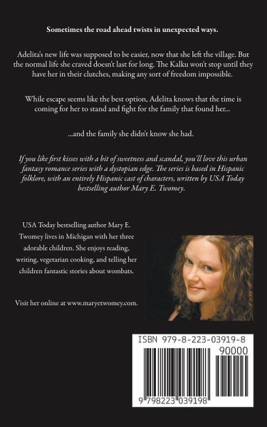 Sometimes the road ahead twists in unexpected ways. Adelita's new life was supposed to be easier, now that she left the village. But the normal life she craved doesn't last for long. The Kalku won't stop until they have her in their clutches, making any sort of freedom impossible. While escape seems like the best option, Adelita knows that the time is coming for her to stand and fight for the family that found her... ...and the family she didn't know she had. If you like first kisses with a bit of sweetness and scandal, you'll love this urban fantasy romance series with a dystopian edge. The series is based in Hispanic folklore, with an entirely Hispanic cast of characters, written by USA Today bestselling author Mary E. Twomey.