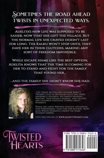 Sometimes the road ahead twists in unexpected ways. Adelita's new life was supposed to be easier, now that she left the village. But the normal life she craved doesn't last for long. The Kalku won't stop until they have her in their clutches, making any sort of freedom impossible. While escape seems like the best option, Adelita knows that the time is coming for her to stand and fight for the family that found her... ...and the family she didn't know she had. If you like first kisses with a bit of sweetness and scandal, you'll love this urban fantasy romance series with a dystopian edge. The series is based in Hispanic folklore, with an entirely Hispanic cast of characters, written by USA Today bestselling author Mary E. Twomey.