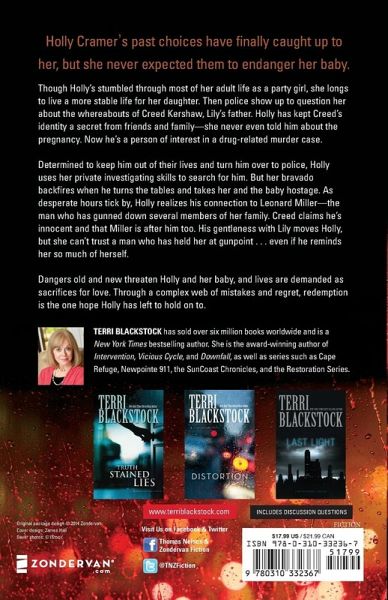 From New York Times bestselling author Terri Blackstock comes Twisted Innocence, a thrilling conclusion to the Moonlighters series, where danger, deception, and redemption collide. Holly Cramer has always lived life on the edge, but now, with a baby to protect, she's determined to turn things around. Her resolve is tested when police come knocking--looking for Creed Kershaw, Lily's father and a suspect in a brutal drug-related murder. Holly never told Creed he had a daughter, and she's desperate to keep it that way. But when she tracks him down, her plan to hand him over to the authorities takes a terrifying turn: Creed kidnaps Holly and Lily, claiming he's being hunted too. As fear mounts and trust teeters on a knife's edge, Holly must confront her past mistakes and decide whether the man holding her captive is truly her enemy--or the only ally she has left. But with a deadly adversary closing in, redemption may come at the highest cost of all. Terri Blackstock delivers a riveting finale brimming with danger, faith, and forgiveness. Fans of Lynette Eason and Irene Hannon won't want to miss this heart-wrenching, hope-filled suspense. Pick up Twisted Innocence and experience the powerful conclusion to the Moonlighters series. Part of the Moonlighters Series (Truth Stained Lies, Distortion, Twisted Innocence) where three sisters balance everyday life with the hidden world of private investigation.
