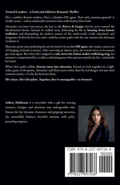 Twisted Loyalties - A Dark and Addictive Romantic Thriller He's a ruthless Russian mafioso. She's a relentless FBI agent. Their only common ground? A deadly enemy-and an undeniable attraction that could destroy them both. Alexander was born into power, the heir to the Bratva di Sangue, but he never wanted the bloodstained throne. Instead, he walked away, dedicating his life to hunting down human traffickers and dismantling the darkest corners of the underworld. Cold, calculated, and dangerous, he lives by his own code-until he crosses paths with the one woman who threatens to shatter it. Elena has spent years perfecting the art of control. As an elite FBI agent, she's made a career out of bringing criminals to justice. After surviving an abusive past, she vowed never to let anyone get close again. But when she's assigned to take down the Italian mafia's trafficking ring, her mission is compromised by a reckless, infuriating man who operates outside the law-and inside her head. When their paths collide, distrust turns into obsession. Forced to work together in a high-stakes game of deception, Alexander and Elena soon realize that the real danger isn't just their common enemy-it's the fire between them. He's chaos. She's discipline. Together, they're unstoppable-or doomed. Perfect for fans of dark romance, high-stakes suspense, and morally grey antiheroes. If you love books with forbidden chemistry, intense action, and a love story that defies the odds, Twisted Loyalties will leave you breathless.