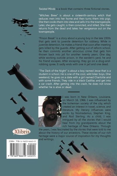 Here are Roy V. Spikes' studies of several variations of historically-recognized pathologies. Twisted Minds is composed of three stylistically original and technically egregious short stories, there are three protagonists which have become stock characters in American literature who are mired in situational kerfuffles. Further, these situations are a much-loved commonplace, classic pieces of Americana. The stories are "Witches Brew," about a sixteenth-century witch who seduces men into her home and then turns them into pigs; "Prison Break," a story of a young boy in the late 1930's who gets sent to juvenile detention for robbery; and "The Dark of Night," about Jessie, one of those cool, wild biker boys who gets into an accident after which he does not know whether he is alive or dead. The triptych of stories are unrelated but are twined together to dramatize young adult pathologies. The characterizations and plots are utterly realized with an incisive but non-intrusive modernism. Spikes' voice has the quality of speaking directly into the modern debate without being out of place, without being too common, slyly hooking in the reader into a state of suspended disbelief which the reader will find familiar, lived-in and sensible. This is a groundbreaking work and Roy V. Spikes is a name to watch in American literature's futurescape.