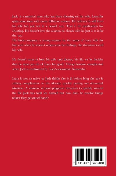 Jack, is a married man who has been cheating on his wife, Lana for quite some time with many different women. He believes he still loves his wife but just not in a sexual way. That is his justification for cheating. He doesn't love the women he cheats with he just is in it for the sex. His latest conquest, a young woman by the name of Lucy, falls for him and when he doesn't reciprocate her feelings, she threatens to tell his wife. He doesn't want to hurt his wife and destroy his life, so he decides that he must get rid of Lucy for good. Things become complicated when Jack is confronted by Lucy's roommate Samantha. Lana is not as naive as Jack thinks she is & before long she too is adding complication to the already quickly getting out of-control situation. A moment of poor judgment threatens to quickly unravel the life Jack has built for himself but how does he resolve things before they get out of hand?