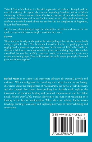 Twisted Pearl of the Prairies is a heartfelt exploration of resilience, betrayal, and the search for identity. Set against the vast and unyielding Canadian prairies, it follows the journey of Elena, a woman whose life takes an unexpected turn when she inherits a crumbling farmhouse tied to her family's buried secrets. With each discovery, she confronts not only the truth about her past but also the complexities of forgiveness, love, and self-reinvention. This is a story about finding strength in vulnerability and clarity in chaos-a tale that speaks to anyone who has ever sought to redefine their story. Excerpt "Elena stood at the edge of the prairie, the wind pulling at her hair like unseen hands trying to guide her back. The farmhouse loomed behind her, its peeling paint and sagging porch a testament to years of neglect-and the secrets it held. In her hands, she clutched a faded letter, its creases worn thin by time and trembling fingers.The words it carried had shattered her carefully constructed world, yet somewhere in the pain was a strange, unrelenting hope. If she could unearth the truth, maybe, just maybe, she could piece herself back together."