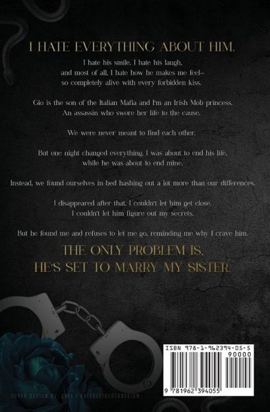 I hate everything about him. I hate his smile. I hate his laugh, and most of all, I hate how he makes me feel-so completely alive with every forbidden kiss. Gio is the son of the Italian Mafia and I'm an Irish Mob princess. An assassin who swore her life to the cause. We were never meant to find each other. But one night changed everything. I was about to end his life, while he was about to end mine. Instead, we found ourselves in bed hashing out a lot more than our differences. I disappeared after that. I couldn't let him get close. I couldn't let him figure out my secrets. But he found me and refuses to let me go, reminding me why I crave him. The only problem is, he's set to marry my sister.