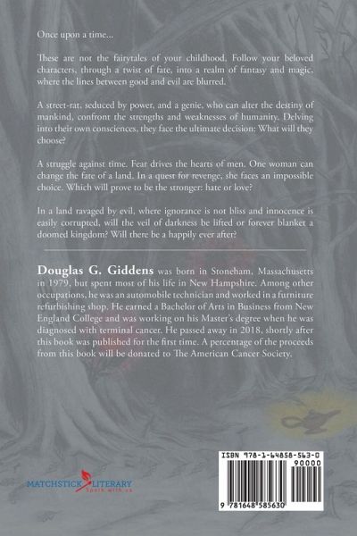Once upon a time These are not the fairytales of your childhood. Follow your beloved characters, through a twist of fate, into a realm of fantasy and magic, where the lines between good and evil are blurred. A street-rat, seduced by power, and a genie, who can alter the destiny of mankind, confront the strengths and weaknesses of humanity. Delving into their own consciences, they face the ultimate decision: What will they choose? A struggle against time. Fear drives the hearts of men. One woman can change the fate of a land. In a quest for revenge, she faces an impossible choice. Which will prove to be the stronger: hate or love? In a land ravaged by evil, where ignorance is not bliss and innocence is easily corrupted, will the veil of darkness be lifted or forever blanket a doomed kingdom? Will there be a happily ever after?