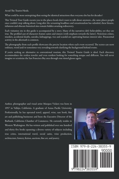 >What could be more uninspiring than seeing the identical attractions that everyone else has for decades? This Twisted Tour Guide escorts you to the places locals don't want to talk about anymore...the same places people once couldn't stop talking about. Long after the screaming headlines and sensationalism has subsided, these bizarre, infamous and obscure historical sites remain hidden awaiting rediscovery. Each visitation site in this guide is accompanied by a story. Many of the narratives defy believability, yet they are true. The profiled cast of characters feature saints and sinners (with emphasis towards the latter). Notorious crimes, murders, accidental deaths, suicides, kidnappings, vice and scandal are captivating human interest tales. Paranormal activity in the aftermath is common. The photography from each profile showcases the precise location where each event occurred. The scenes can seem ordinary, weird and/or sometimes very revealing towards clarifying the background behind events. If you're seeking an alternative to conventional tourism, this Twisted Tourist Guide is ideal. Each directory accommodates the restless traveler and even resident looking for something unique and different. You will never imagine or scrutinize the San Francisco Bay area through rose tinted glasses again. The contents include: SAN FRANCISCO: >EAST BAY AREA >MARIN COUNTY >PENINSULA >SOLANO COUNTY >SONOMA & NAPA COUNTIES Blue Wing Inn, California Industrial Farm for Women, Fishhead Beach Murder, Petaluma's Crooked History, Polly Kla