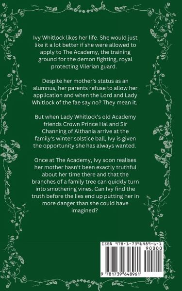 Ivy Whitlock likes her life. She would just like it a lot better if she were allowed to apply to The Academy, the training ground for the demon fighting, royal protecting Vilerian guard. She was not made for organising balls and entertaining simpering suitors. She craves more, craves a legacy like the one her mother made for herself in her Academy years almost two centuries ago. Despite her mothers status as an alumni, her parents refuse to allow her application and when the Lord and Lady Whitlock of the fae say no? They mean it.But when Lady Whitlock's old Academy friends Crown Prince Hal and Sir Channing of Althania arrive at the families winter solstice ball, Ivy is given the opportunity she has always wanted. Once at The Academy, Ivy soon realises that her mother hasn't been exactly truthful about her time there and that the branches of a family tree can quickly turn into smothering vines. Can Ivy find the truth before the lies end up putting her in more danger than she could have imagined?