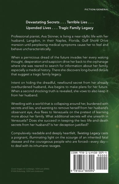 "Compulsively readable and deeply heartfelt..." -- David M. Carew, author Ava Skinner's idyllic life is about to unravel. A professional pianist, Ava lives with her husband, Langdon, in their multi-million dollar, Naples, Florida, Gulf Shore Drive mansion. Then the symptoms begin. Looking for answers, Ava takes a trip to her childhood home, St. Joseph's Orphanage, and discovers a letter from her biological mother that lays open the tragic family legacy. Wrestling with a world that is collapsing around her, and frantic to conceal her worsening condition from her husband, Ava flees to Venezuela. In Maracaibo, Ava meets Mariella, wife of Ava's terminally-ill cousin. Poverty-stricken Mariela, who lives in a one-room shack in an alley, has surrendered everything in the name of love. As she spirals towards her fate, Ava becomes intimate with the obstacles and challenges once endured by members of her own family. Yet even in the wake of her deception and extreme sacrifice, courage wins out, love endures, and hope remains.