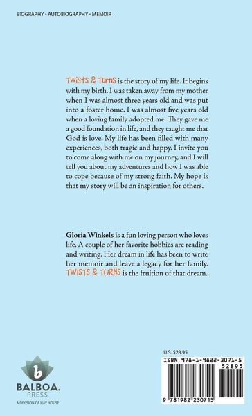 Gloria Winkels is a fun loving person who loves life. A couple of her favorite hobbies are reading and writing. Her dream in life has been to write her memoir and leave a legacy for her family. TWISTS & TURNS is the fruition of that dream.
