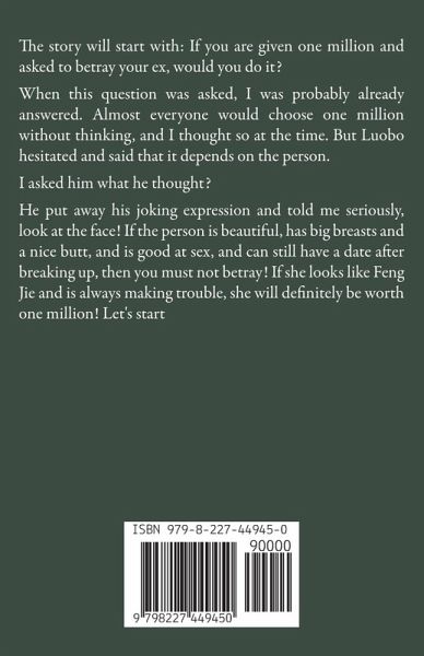The story will start with: If you are given one million and asked to betray your ex, would you do it? When this question was asked, I was probably already answered. Almost everyone would choose one million without thinking, and I thought so at the time. But Luobo hesitated and said that it depends on the person. I asked him what he thought? He put away his joking expression and told me seriously, look at the face! If the person is beautiful, has big breasts and a nice butt, and is good at sex, and can still have a date after breaking up, then you must not betray! If she looks like Feng Jie and is always making trouble, she will definitely be worth one million! Let's start