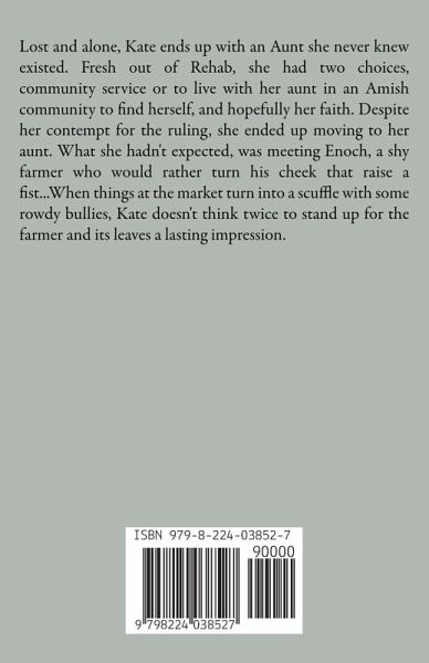 Lost and alone, Kate ends up with an Aunt she never knew existed. Fresh out of Rehab, she had two choices, community service or to live with her aunt in an Amish community to find herself, and hopefully her faith. Despite her contempt for the ruling, she ended up moving to her aunt. What she hadn't expected, was meeting Enoch, a shy farmer who would rather turn his cheek that raise a fist...When things at the market turn into a scuffle with some rowdy bullies, Kate doesn't think twice to stand up for the farmer and its leaves a lasting impression.