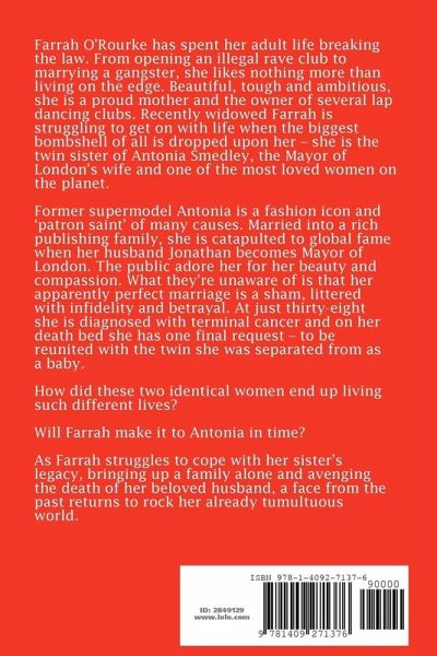 Farrah O'Rourke has spent her adult life breaking the law, opening an illegal rave club and marrying a gangster - she likes nothing more than living on the edge. Recently widowed she is struggling to get on with life when a bombshell is dropped upon her - she's the twin sister of Antonia Smedley, the Mayor of London's wife and one of the most loved women in the world. Former supermodel Toni - fashion icon and patron of many causes is catapulted to fame when her husband Jonathan becomes Mayor of London. Adored for her beauty and compassion no one knows her apparently perfect marriage is a sham. At just 38 she is diagnosed with terminal cancer and has one final request - to be reunited with the twin she was separated from as a baby. How did these two identical women end up living such different lives? As Farrah struggles with her sister's legacy, bringing up a family alone and avenging the death of her beloved husband, a face from the past returns to rock her already tumultuous world.