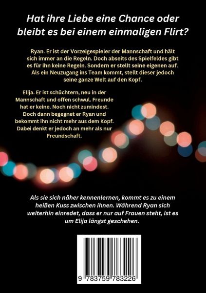 Hat ihre Liebe eine Chance oder bleibt es bei einem einmaligen Flirt? Ryan. Er ist der Vorzeigespieler der Mannschaft und hält sich immer an die Regeln. Doch abseits des Spielfeldes gibt es für ihn keine Regeln. Sondern er stellt seine eigenen auf. Als ein Neuzugang ins Team kommt, stellt dieser jedoch seine ganze Welt auf den Kopf. Elija. Er ist schüchtern, neu in der Mannschaft und offen schwul. Freunde hat er keine. Noch nicht zumindest. Doch dann begegnet er Ryan und bekommt ihn nicht mehr aus dem Kopf. Dabei denkt er jedoch an mehr als nur Freundschaft. Als sie sich näher kennenlernen, kommt es zu einem heißen Kuss zwischen ihnen. Während Ryan sich weiterhin einredet, dass er nur auf Frauen steht, ist es um Elija längst geschehen.