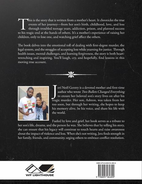 This is the story that is written from a mother's heart. It chronicles the true events of her journey-from her son's birth, childhood, love, and loss through troubled teenage years, addiction, prison, and planned success to his tragic end at the hands of others. It's a mother's experience of raising her children, only to lose one, and watching grief affect the others. The book delves into the emotional toll of dealing with first-degree murder, the legal system, and the struggles of accepting loss while yearning for justice. Through health issues, mental challenges, and learning forgiveness, the story is both heart-wrenching and inspiring. You'll laugh, cry, and hopefully, find lessons in this moving true account.