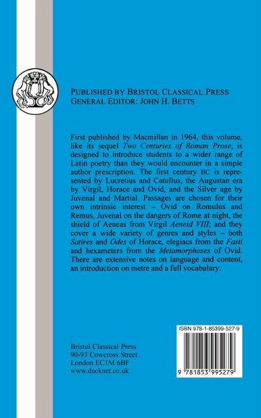 First published by Macmillian in 1964, this book is designed to introduce students to a wider range of Latin poetry than they would encounter in a simple author prescription. The first century BC is represented by Lucretius and Catullus, the Augustan era by Virgil, Horace and Ovid, and the Silver age by Juvenal and Martial. Passages are chosen for their own intrinsic interest - Ovid on Romulus and Remus, Juvenal on the dangers of Rome at night, the sheild of Aeneas from Virgil's Aeneid VIII ; they cover a wide variety of genres and styles - both Satires and Odes of Horace, elegiacs from the Fasti and hexameters from the Metamorphoses of Ovid. There are extensive notes on language and content, an introduction on metre and a full vocabulary.