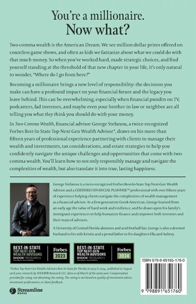 Two-comma wealth is the American Dream. We see million-dollar prizes offered on countless game shows, and often as kids we fantasize about what we could do with that much money. So when you've worked hard, made strategic choices, and find yourself standing at the threshold of that new chapter in your life, it's only natural to wonder, "Where do I go from here?" Becoming a millionaire brings a new level of responsibility: the decisions you make can have a profound impact on your financial future and the legacy you leave behind. This can be overwhelming, especially when financial pundits on TV, podcasters, fad investors, and maybe even your brother-in-law or neighbor are all telling you what they think you should do with your money. In Two-Comma Wealth, financial advisor George Stefanou, a twice-recognized Forbes Best-In-State Top Next-Gen Wealth Advisor*, draws on his more than fifteen years of professional experience partnering with clients to manage their wealth and investments, tax considerations, and estate strategies to help you confidently navigate the unique challenges and opportunities that come with two-comma wealth. You'll learn how to not only responsibly manage and navigate the complexities of wealth, but also translate it into true, lasting happiness. *Forbes Top Next-Gen Wealth Advisors Best-In-State for Florida in 2023 & 2024, published in August each year, research by SHOOK® Research LLC, data as of March of the same year. Compensation provided for using, not obtaining, the rating. The rating is not based on quality of investment advice, investment performance, or client feedback.