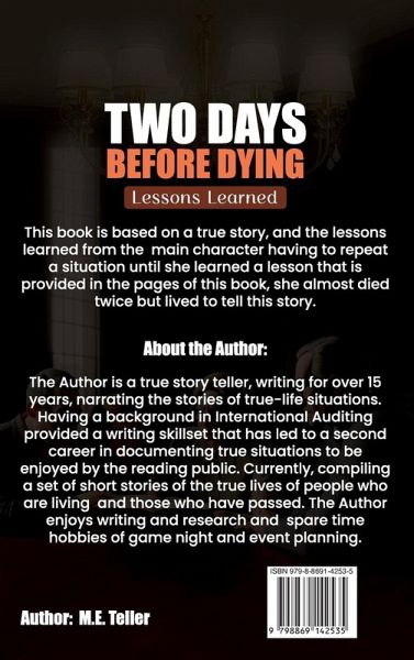 This book is based on a true story, and the lessons learned from the main character having to repeat a situation until she learned a lesson that is provided in the pages of this book, she almost died twice but lived to tell this story.