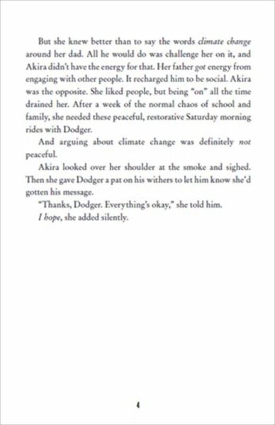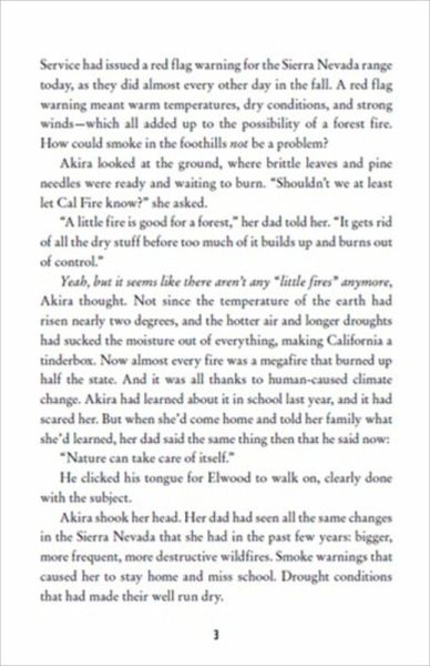 Fire. Flood. Ice. Three natural disasters. Akira, Owen, and Natalie are all swept up in the global effects ofclimate change, each struggling to survive their individual disasters. But the three kids are more deeply connected than they couldever imagine, in ways that can change the world.