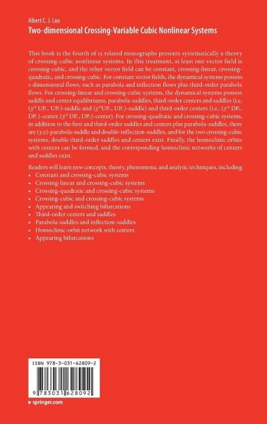 This book is the fourth of 15 related monographs presents systematically a theory of crossing-cubic nonlinear systems. In this treatment, at least one vector field is crossing-cubic, and the other vector field can be constant, crossing-linear, crossing-quadratic, and crossing-cubic. For constant vector fields, the dynamical systems possess 1-dimensional flows, such as parabola and inflection flows plus third-order parabola flows. For crossing-linear and crossing-cubic systems, the dynamical systems possess saddle and center equilibriums, parabola-saddles, third-order centers and saddles (i.e, (3rd UP+:UP+)-saddle and (3rdUP-:UP-)-saddle) and third-order centers (i.e., (3rd DP+:DP-)-center, (3rd DP-, DP+)-center) . For crossing-quadratic and crossing-cubic systems, in addition to the first and third-order saddles and centers plus parabola-saddles, there are (3:2)parabola-saddle and double-inflection saddles, and for the two crossing-cubic systems, (3:3)-saddles and centers exist. Finally,the homoclinic orbits with centers can be formed, and the corresponding homoclinic networks of centers and saddles exist.