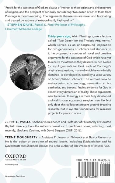 Thirty years ago, Alvin Plantinga gave a lecture called "Two Dozen (or so) Theistic Arguments," which served as an underground inspiration for two generations of scholars and students. In it, he proposed a number of novel and creative arguments for the existence of God which have yet to receive the attention they deserve. In Two Dozen (or so) Arguments for God, each of Plantinga's original suggestions, many of which he only briefly sketched, is developed in detail by a wide variety of accomplished scholars. The authors look to metaphysics, epistemology, semantics, ethics, aesthetics, and beyond, finding evidence for God in almost every dimension of reality. Those arguments new to natural theology are more fully developed, and well-known arguments are given new life. Not only does this collection present ground-breaking research, but it lays the foundations for research projects for years to come.