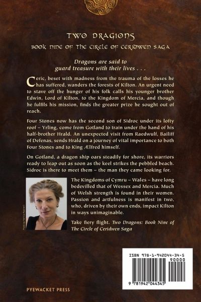 Two Dragons Dragons are said to guard treasure with their lives... Ceric, beset with madness from the trauma of the losses he has suffered, wanders the forests of Kilton. An urgent need to stave off the hunger of his folk calls his younger brother Edwin, Lord of Kilton, to the Kingdom of Mercia, and though he fulfils his mission, finds the greater prize he sought out of reach. Four Stones now has the second son of Sidroc under its lofty roof - Yrling, come from Gotland to train under the hand of his half-brother Hrald. An unexpected visit from Raedwulf, Bailiff of Defenas, sends Hrald on a journey of vital importance to both Four Stones and to King Ælfred himself. On Gotland, a dragon ship oars steadily for shore, its warriors ready to leap out as soon as the keel strikes the pebbled beach. Sidroc is there to meet them - the man they came looking for. The Kingdoms of Cymru - Wales - have long bedevilled that of Wessex and Mercia. Much of Welsh strength is found in their women. Passion and artfulness is manifest in two, who, driven by their own ends, impact Kilton in ways unimaginable. Take fiery flight. Two Dragons: Book Nine of The Circle of Ceridwen Saga