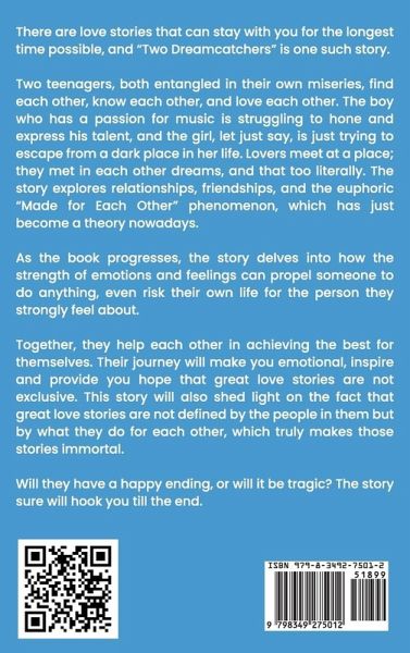 There are love stories that can stay with you for the longest time possible, and "Two Dreamcatchers" is one such story. Two teenagers, both entangled in their own miseries, find each other, know each other, and love each other. The boy who has a passion for music is struggling to hone and express his talent, and the girl, let just say, is just trying to escape from a dark place in her life. Lovers meet at a place; they met in each other dreams, and that too literally. The story explores relationships, friendships, and the euphoric "Made for Each Other" phenomenon, which has just become a theory nowadays. As the book progresses, the story delves into how the strength of emotions and feelings can propel someone to do anything, even risk their own life for the person they strongly feel about. Together, they help each other in achieving the best for themselves. Their journey will make you emotional, inspire and provide you hope that great love stories are not exclusive. This story will also shed light on the fact that great love stories are not defined by the people in them but by what they do for each other, which truly makes those stories immortal. Will they have a happy ending, or will it be tragic? The story sure will hook you till the end.