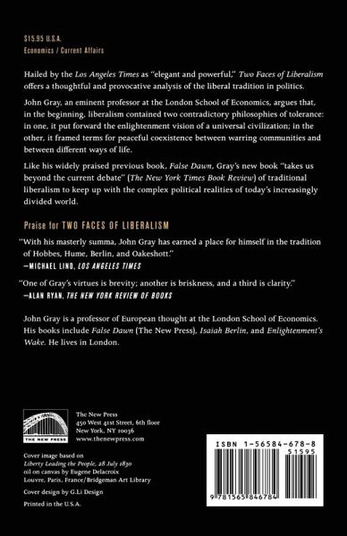 Following on the heels of the widely hailed False Dawn, this new work by John Gray, &;ldquo;one of Britain's leading intellectuals" (The Wall Street Journal), offers a thoughtful and provocative analysis of the failure of classical liberalism to keep up with the complex political realities of today's increasingly divided world. Two Faces of Liberalism argues that, from its inception, liberalism contained two contradictory philosophies of tolerance. In one, it advanced the enlightenment project of a universal civilization. In the other, it framed terms for peaceful coexistence between warring communities and different ways of life. Each of these liberal ideals of toleration, developed when a single worldview dominated society, has many historic achievements to its credit. But how relevant is traditional liberalism in a world where Kosovo represents the collapse of the spirit of cohabitation? In a spirited attack on today's liberal orthodoxies, Gray argues that establishing a modus vivendi between different cultures and regimes should be at the heart of contemporary liberalism. In this major contribution to political theory, Gray proposes a new framework for liberal thought that addresses these burning issues.