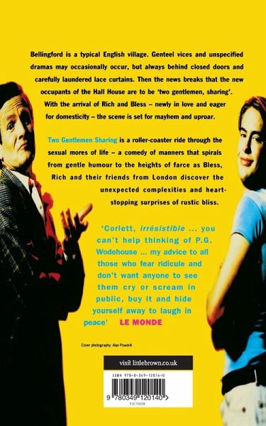 Bellingford is a sleepy village set amid gently rolling countryside. Whatever scandals may occur there, they always take place behind closed doors and carefully laundered lace curtains. In short, Bellingford is a typical English village. That is until the news breaks that the Hall House has been sold at last and the rumour starts that the new occupants are to be 'two gentlemen, sharing'. With the arrival of Rich and Bless - newly in love and eager for domesticity - the scene is set for mayhem and uproar. And with Rich on a business trip to the States, Bless is plunged into a vortex of events that leaves him gasping for the cosy domesticity of Earl's Court on a Saturday night.... TWO GENTLEMEN SHARING is a roller coaster ride through the sexual mores of life, a comedy of manners that spirals from gentle humour to the heights of farce.