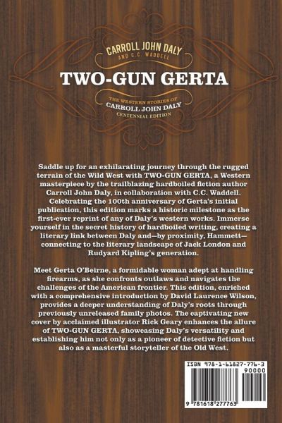 Saddle up for an exhilarating journey through the rugged terrain of the Wild West with Two-Gun Gerta, a Western masterpiece by the trailblazing hardboiled fiction author Carroll John Daly, in collaboration with C.C. Waddell. Celebrating the 100th anniversary of Gerta's initial publication, this edition marks a historic milestone as the first-ever reprint of any of Daly's western works. Immerse yourself in the secret history of hardboiled writing, creating a literary link between Daly and-by proximity, Hammett- connecting to the literary landscape of Jack London and Rudyard Kipling's generation. Meet Gerta O'Beirne, a formidable woman adept at handling firearms, as she confronts outlaws and navigates the challenges of the American frontier. This edition, enriched with a comprehensive introduction by David Laurence Wilson, provides a deeper understanding of Daly's roots through previously unreleased family photos. The captivating new cover by acclaimed illustrator Rick Geary enhances the allure of Two-Gun Gerta, showcasing Daly's versatility and establishing him not only as a pioneer of detective fiction but also as a masterful storyteller of the Old West.