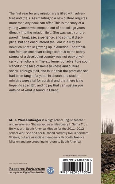 The first year for any missionary is filled with adventure and trials. Assimilating to a new culture requires more than any book can offer. This is the story of a young woman who stepped out of her college years directly into the mission field. She was vastly unprepared in language, experience, and spiritual discipline, but she encountered the Lord in a way she never could while growing up in America. The transition from an American college campus to the sandy streets of a developing country was not easy physically or emotionally. The excitement of adventure soon waned in the face of homesickness and culture shock. Through it all, she found that the practices she had been taught for years in church and student ministry were vital for survival and that there is no hope, no strength, and no joy that can sustain you outside of what is found in Christ.