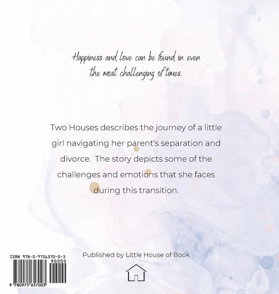 Two Houses is about a little girl whose parents are separating and divorcing. The story takes you through some of the big changes and challenges that she faces during this transition. Some of these include; moving from her childhood home to live with her mum at her grandparents house, traveling to her dad's apartment for weekends, fears of being alone and not understood by her friends. Overtime, and with the support of her family and friends, things get easier and she is happier because of this change. Families come in all shapes and sizes, happiness and love can be found in even the most challenging of times.