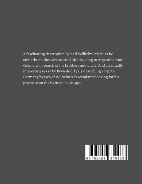 A fascinating description by Karl Wilhelm Stiefel as he embarks on the adventure of his life to go to Argentina from Germany in search of his brothers and uncle. And an equally interesting essay by Reynaldo Ayala describing a trip to Germany by two of Wilhelm's descendants looking for his presence on the German landscape