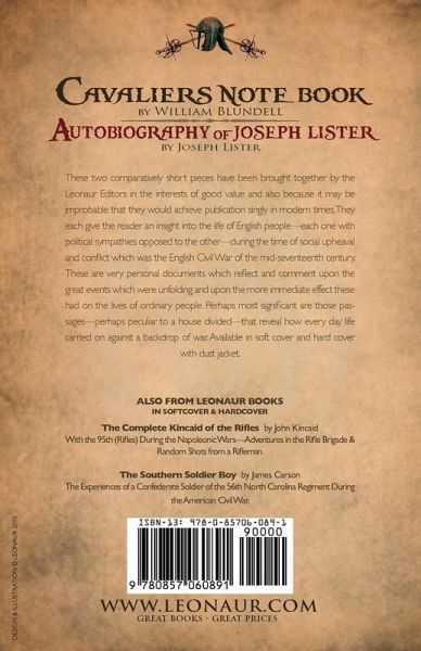 The Royalist and the Parliamentarian These two comparatively short pieces have been brought together by the Leonaur Editors in the interests of good value and also because it may be improbable that they would achieve publication singly in modern times. They each give the reader an insight into the life of English people-each one with political sympathies opposed to the other-during the time of social upheaval and conflict which was the English Civil War of the mid-seventeenth century. These are very personal documents which reflect and comment upon the great events which were unfolding and upon the more immediate effect these had on the lives of ordinary people. Perhaps most significant are those passages-perhaps peculiar to a house divided-that reveal how every day life carried on against a backdrop of war. Available in soft cover and hard cover with dust jacket.