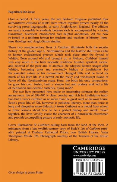 Taken together, these two complementary lives of Cuthbert vividly evoke the character of a remarkable churchman and provide a picture of early monastic life.