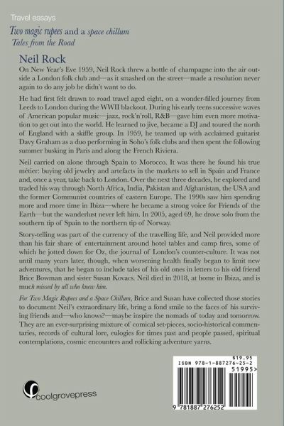 Two Magic Rupees and a Space Chillum are writer Neil Rock's (1936 - 2018) 48 lucid essays that bring us closer to a world and it's populations in transition after WWII and the collapse of the European Colonial age. The subtitle, Post Colonial Travels of a Seminal British Rocker alludes to his childhood growing up in England when the rapid shrinkage of the British Raj also coincided with another invasion on it's shores-that of Black American music, into the very soul streams of white British youth. Deeply inspired by the Blues, Jazz, Rhythm & Blues and Rock n Roll, the black men and women who made this music suddenly become subjects of admiration and emulation. Fully affected by this code switch in behavior, our author affords us a fresh look at the aftermath of the Empire as witnessed by an English native who describes his childhood background as follows, "Yorkshire is England's largest county, an area of industrial cities and large open countryside with quiet valleys dotted with small agricultural villages. Most settlements are old and full of tradition. My playgrounds were places that have names of early English historic provenance: Oakwood, Roundhay, Temple Newsham, Seacroft, Harewood and Cross Gates. In the county there are towns and villages with names such as Streoneshlh (Whitby), Ulaskelf, Thriebergh, Jervaux and Rievaulx, which reveal Yorkshires' Saxon, Viking and Norman French history. The Shire of York is Hobbit country, the Real Hobbit Country, which having been born in I came to love by exploring it since I was a child of eight years old." But in the 50's, once he heard music from America, this is what he remembers, "My mission in life was to get up and dance, but I'm looking and I'm talking and can't find any kids who know this jivin', swing, boogie stuff." He steeped himself in the music, jamming and busking with other musicians, adding a component to the music that became the unifying soundtrack of the social revolution brought on by the civil rights movement, hand in hand with the anti-war movement- major social factors not lost on the post-war British youth. Neil Rock did not wind up playing in a British rock band, but being a literati, he continued writing about things as he saw them and his calling took him overseas to experience the world without the usual cultural and racial biases towards the 'other' people of the world, attitudes enforced and maintained during the colonial age. Through Mr. Rock's eyes we get to see what else was going on out.