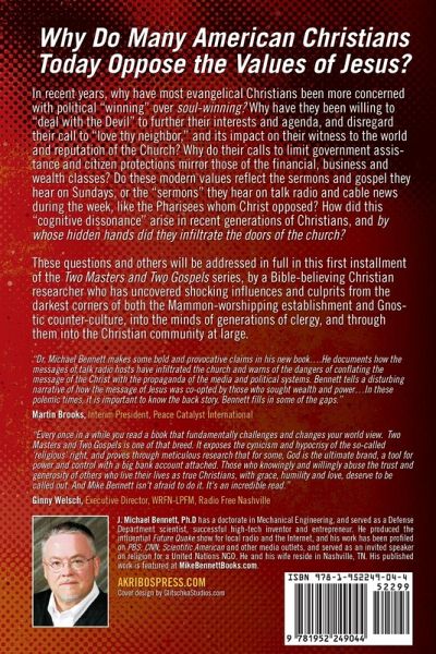 Why do many American Christians Today Oppose the Values of Jesus? In recent years, why have most evangelical Christians been more concerned with political "winning" over soul-winning? Why have they been willing to "deal with the Devil" to further their interests and agenda, and disregard their call to "love thy neighbor," and its impact on their witness to the world and reputation of the Church? Why do their calls to limit government assistance and citizen protections mirror those of the financial, business and wealth classes? Do these modern values reflect the sermons and gospel they hear on Sundays, or the "sermons" they hear on talk radio and cable news during the week, like the Pharisees whom Christ opposed? How did this "cognitive dissonance" arise in recent generations of Christians, and by whose hidden hands did they infiltrate the doors of the church? These questions and others will be addressed in full in this first installment of the Two Masters and Two Gospels series, by a Bible-believing Christian researcher who has uncovered shocking influences and culprits from the darkest corners of both the Mammon-worshipping establishment and Gnostic counter-culture, into the minds of generations of clergy, and through them into the Christian community at large. It explores the observable changes in the attitudes, perceptions of and interactions with the outside world by America's Religious Right and evangelical base in the recent years of the "Trump phenomena," finding in their new president a messianic figure and an apparent expression of the collective "id" of their embattled culture and heritage of preeminent societal stewardship. However, have they made a "Faustian bargain" with the aim of a reclamation of short-term power and influence, and if so, which party is the compromising Faust, and which is the seducing Devil? Furthermore, have they sacrificed their (sometimes) historical role in society of spiritual guardianship and ethical example and leadership, "despising their birthright" of such like Esau, for a "mess of Trump porridge," or worse yet, in exchange for thirty pieces of silver? So how have most of today's Religious Right-affiliated "salt of the earth" citizens developed a mindset and attitudes towards others and the issues of the day, expressing clannish pride, xenophobic paranoia of the "stranger" outside their own clan as well as a disregard for their suffering, and an exaltation of the wealthy, worldly successful and arrogant, in direct contradiction to the Sermon-on-the-Mount Kingdom principles of humility and "others-centeredness" taught by their own Founder and Savior? This work asserts that this paradox is best explained upon consideration of the "other gospel" most Christians are exposed to every week, as countless hours of exposure to talk radio and cable news during their commutes, work day and evening meal simply dwarfs the influence from their house of worship, propagating a "business-friendly" worldview. This work also reviews a score or more of the pertinent "hot button" issues of the day, and reveals how the teachings of Jesus and the saints as recorded in scripture bears little similarity to the media "gospel" that despises the poor, the stranger, and other "undesirables." Worse yet is the discovery, in the little-known historical investigation within this work, that our own Christian leaders colluded with Big Business interests in the New Deal-era to fight forms of public assistance, paid for with hard cash, who in turn used Christian media to train our national clergy and public, using guides und