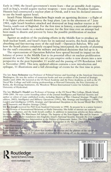 A detailed account of the way Israel dealt with the Iraqi nuclear buildup between its launch in 1974 and the destruction of the Tamuz I reactor on 7 June 1981. This updated account includes formerly classified information and photographs taken during the mission and from US spy satellites.This edition provides a detailed account of the way Israel dealt with the Iraqi nuclear build up between its launch in 1974 and the destruction of the Tamuz I reactor on 7 June 1981.