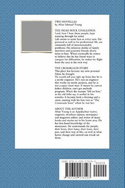 TWO NOVELLAS by Allan Ishmael Young THE HEAD ROCK CHALLENGE Lord, how I hate these people, kept running through his mind. Life seems to smite him at every turn. His personal as well as his professional life, are constantly full of insurmountable problems. His inherent dislike of family members and potential friends slowly turns to hate. When eventually he comes to believe that he has found ways to conquer his difficulties, he makes his flight from the area in his own way. THE CROSSROADS STORE This place has become my own personal Eden, he thought. He would tell you right up front that he is a sterile engineer. He's not an engineer that works on sterile projects, and he is not a super clean man. It means he cannot father children, can't get anybody pregnant. When the mumps "fell on him," as the old folks say, it settled in his testicles. It became both a blessing and a curse, starting with his first visit to "The Crossroads Store" when he met her.