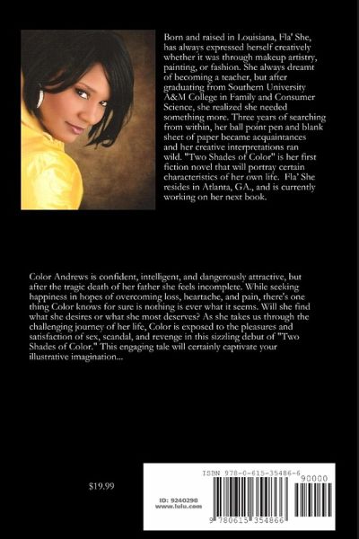 Color Andrews is confident, intelligent, and dangerously attractive, but after the tragic death of her father she has felt incomplete. While she seeks happiness in hopes of overcoming loss, heartache, and pain, one thing Color knows for sure is nothing is ever what it seems. Will she find what she desires or what she most deserves? As she takes us through the challenging journey of her life, Color is exposed to the pleasures and satisfaction of sex, scandal, and revenge in this sizzling debut of "Two Shades of Color." This engaging tale will certainly captivate your illustrative imagination...