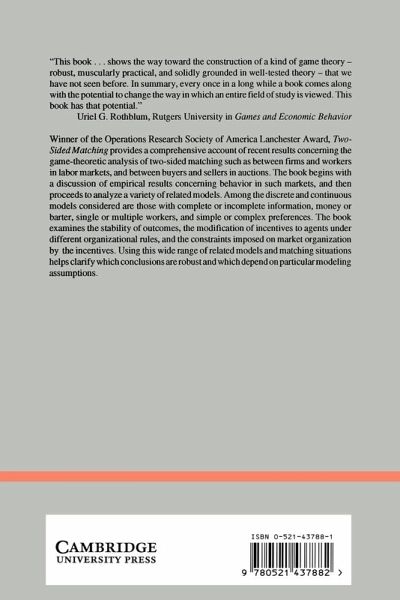 This book provides a comprehensive account of recent results concerning the game-theoretic analysis of two-sided matching.