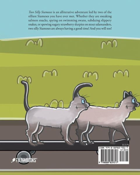 Two Silly Siameses is an alliterative adventure led by two of the silliest Siameses you have ever met. Whether they are sneaking salmon snacks, spying on swimming swans, subduing slippery snakes, or spewing sugary strawberry slurpies on stout salamanders, two silly Siameses are always having a good time! And you will too!