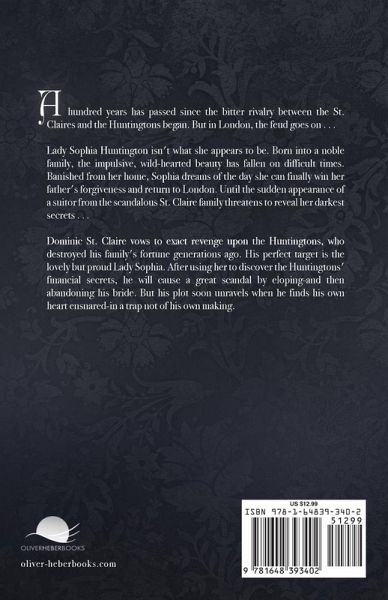 A hundred years has passed since the bitter rivalry between the St. Claires and the Huntingtons began. But in London, the feud goes on . .. Lady Sophia Huntington isn't what she appears to be. Born into a noble family, the impulsive, wild-hearted beauty has fallen on difficult times. Banished from her home, Sophia dreams of the day she can finally win her father's forgiveness and return to London. Until the sudden appearance of a suitor from the scandalous St. Claire family threatens to reveal her darkest secrets . . . Dominic St. Claire vows to exact revenge upon the Huntingtons, who destroyed his family's fortune generations ago. His perfect target is the lovely but proud Lady Sophia. After using her to discover the Huntingtons' financial secrets, he will cause a great scandal by eloping-and then abandoning his bride. But his plot soon unravels when he finds his own heart ensnared-in a trap not of his own making.