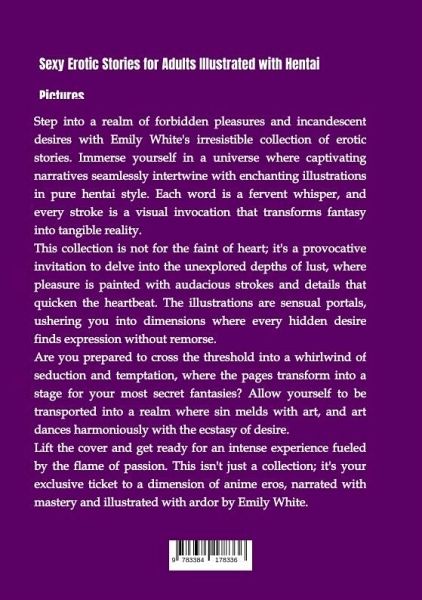 Indulge in an Unforgettable Journey of Passion and Temptation with Emily White's Erotic Masterpiece!Step into a captivating world where seduction knows no bounds in Emily White's latest collection of scintillating erotic stories, enriched with enchanting hentai illustrations. Immerse yourself in a universe where each word is a whispered promise, and every brushstroke is a visual enchantment that brings fantasies to life in pure hentai style.This collection is a daring invitation to explore the uncharted depths of desire, where pleasure unfolds with audacious strokes and details that will quicken your heartbeat. The carefully crafted hentai illustrations serve as sensuous portals, transporting you into dimensions where every hidden fantasy finds unabashed expression.What to Expect:- A Fusion of Literary Mastery and Sensual Artistry- Explicit and Alluring Hentai Illustrations- Stories That Explore the Boundaries of Lust and Fantasy- A Whirlwind of Seduction and TemptationThis isn'tjust a collection; it's your exclusive ticket to a dimension of hentai eros, meticulously narrated and ardently illustrated by Emily White. Lift the cover and prepare for an intense experience fueled by the flame of passion.Caution: This Collection is Not for the Faint of Heart. Are You Ready to Cross the Threshold?