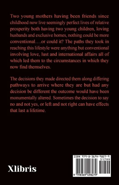 Two young mothers having been friends since childhood now live seemingly perfect lives of relative prosperity both having two young children, loving husbands and exclusive homes, nothing could be more conventional....or could it? The paths they took in reaching this lifestyle were anything but conventional involving love, lust and international affairs all of which led them to the circumstances in which they now find themselves. The decisions they made directed them along differing pathways to arrive where they are but had any decision be different the outcome would have been monumentally altered. Sometimes the decision to say no and not yes, or left and not right can have effects that last a lifetime.