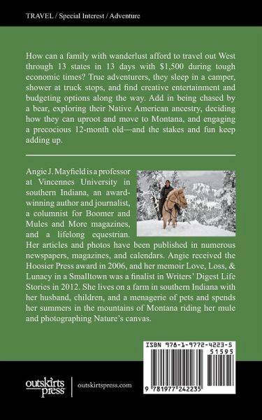 How can a family afford to travel out West through 13 states in 13 days with less than $1,500 during tough economic times? By holding on to their adventurous spirit and each other, by bringing along their own homegrown food supply, and by sleeping in a camper, showering at truck stops, and finding creative entertainment and budgeting options along the way. Add in being chased by a bear, getting lost in the wilderness, exploring their Native American ancestry, and engaging a precocious 12-month old, and the stakes and fun keep adding up in this humorous, heartwarming journey.