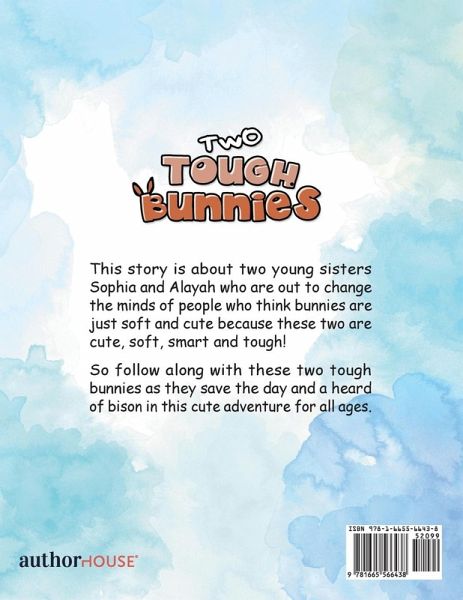 This story is about two young sisters Sophia and Alayah who are out to change the minds of people who think bunnies are just soft and cute because these two are cute, soft, smart and tough! So follow along with these two tough bunnies as they save the day and a heard of bison in this cute adventure for all ages.