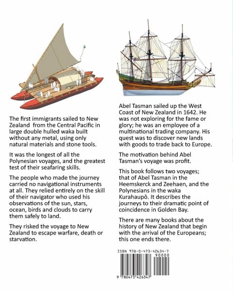 New Zealand was the last major habitable land on Earth to be populated. Many associate the discovery of New Zealand with James Cook, but he was not the first to venture to this isolated part of the Earth. When James Cook landed in New Zealand in July 1769 he landed at what is now known as Gisborne, on the east coast of the North Island. It is in the latitude 38°40'S, and Cook was not sailing this latitude accidentally. The west coast of New Zealand was first revealed on a published map in 1648. James Cook knew exactly where he was going; Abel Tasman had been there in 1642 and Cook had a copy of his chart and journal. The motivation behind Tasman's voyage was profit. He was not voyaging into the unknown for fame, glory or fortune; he was a salaried employee of the Dutch East India Company, a multinational trading company. His mission was to find new lands with goods to trade. He first saw New Zealand on 13th December 1642. Five days later he had a dramatic encounter with the locals; a tribe of M¿ori called Ng¿ti T¿matak¿kiri. This was the first meeting of M¿ori and Europeans. Tasman had not found an empty land; it had already been discovered and settled. New Zealand was discovered by Polynesians from the Central Pacific around 950 AD, but remained only sparsely populated for three hundred years. In approximately 1300 AD a wave of Polynesian migration began. The immigrants that went to New Zealand did so for self-preservation. They risked the voyage to New Zealand to escape warfare, death or starvation. On 19th December 1642 Abel Tasman's crews met the locals with fatal consequences. Those local M¿ori were descendants of the crew of the waka Kurahaup¿ who had arrived in New Zealand about 300 years earlier. Two Voyages follows the journeys of the waka Kurahaup¿, its occupants and their descendants; and Abel Tasman and his crew. It follows the journeys from their origins, to their point of coincidence in Golden Bay. This wonderfully illustrated book explores the discovery of New Zealand by the Polynesians, and by the Europeans after them. It looks at the factors giving impetus to the two journeys, the people who undertook them, their routes, the means by which they travelled, and their tragic first meeting. There are many books about the history of New Zealand that begin with the arrival of Europeans; this one ends there.