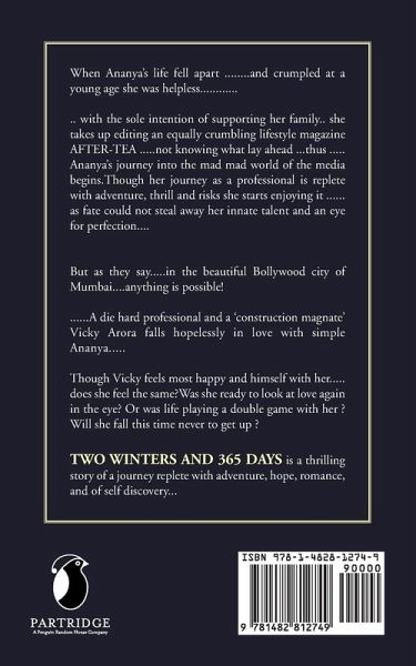 When Ananya's life fell apart and crumpled at a young age she was helpless with the sole intention of supporting her family... she takes up editing an equally crumbling lifestyle magazine AFTER-TEA not knowing what lay ahead thus Ananya's journey into the mad mad world of the media begins. Though her journey as a professional is replete with adventure, thrill and risks she starts enjoying it ...as fate could not steal away her innate talent and an eye for perfection... But as they say in the beautiful Bollywood city of Mumbai anything is possible! A die hard professional and a 'construction magnate' Vicky Arora falls hopelessly in love with simple Ananya...Though Vicky feels most happy and himself with her does she feel the same? Was she ready to look at love again in the eye? Or was life playing a double game with her? Will she fall this time never to get up? TWO WINTERS AND 365 DAYS is a thrilling story of a journey replete with adventure, hope, romance, and of self discovery...